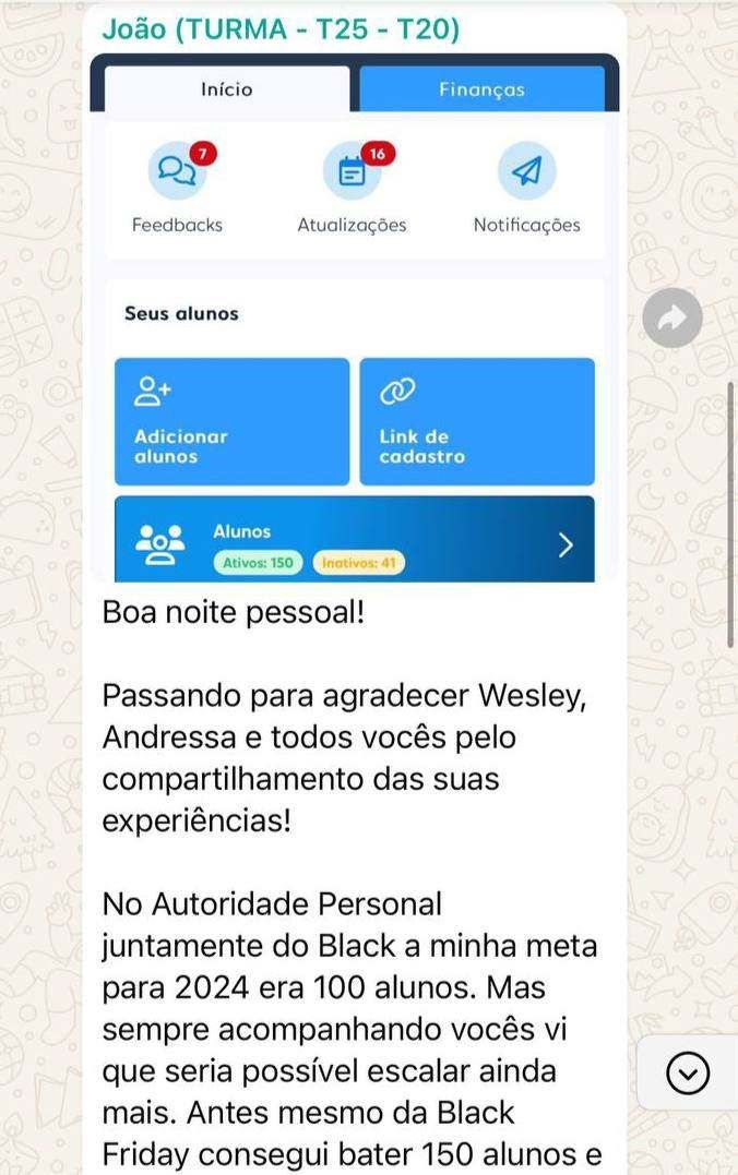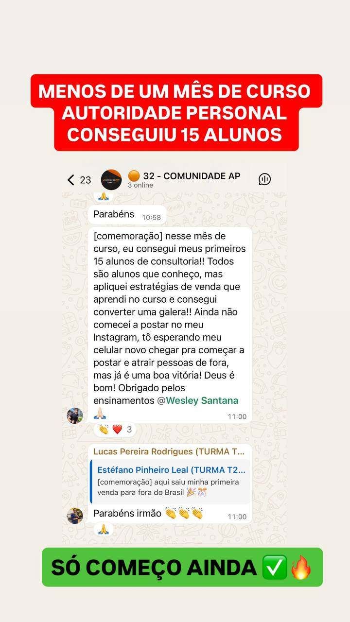 Passei dois anos da faculdade estudando isso. Em um mês de formado, no meu primeiro lançamento, eu já tinha mais de 36 alunos de consultoria online e em dois meses larguei a sala de musculação para viver só com aulas de personal e os alunos de consultoria online.
